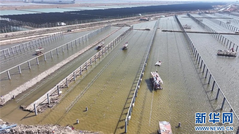 據(jù)悉,三峽青口鹽場漁光互補“光伏復(fù)合”項目是江蘇省最大的單體陸基漁光互補項目。該項目以“漁光一體”模式實現(xiàn)綜合開發(fā),通過“板上發(fā)電、板下養(yǎng)魚”的協(xié)同布局,將光伏電站與水產(chǎn)養(yǎng)殖深度融合,構(gòu)建綠色生態(tài)循環(huán)體系。目前,項目現(xiàn)場正在進(jìn)行光伏板及組件安裝工作,預(yù)計今年5月31日前全容量并網(wǎng)發(fā)電。